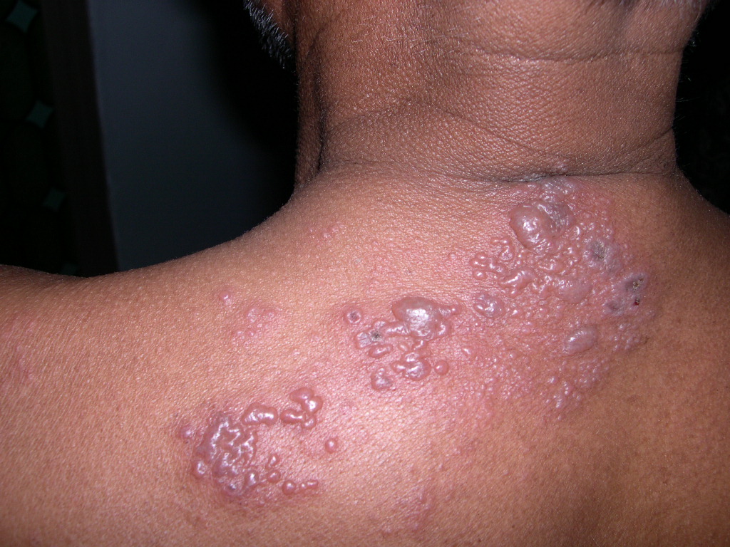 Pain, burning, or a “bug-crawling-under-the-skin” sensation may occur before the rash erupts. Herpes zoster is a one-side-of-the-body skin rash. Post herpetic neuralgia is the dreaded condition we want to avoid. It is a fancy term meaning after-herpes-nerve-pain. This may occur at the site of the rash for years, even after the rash has resolved.
