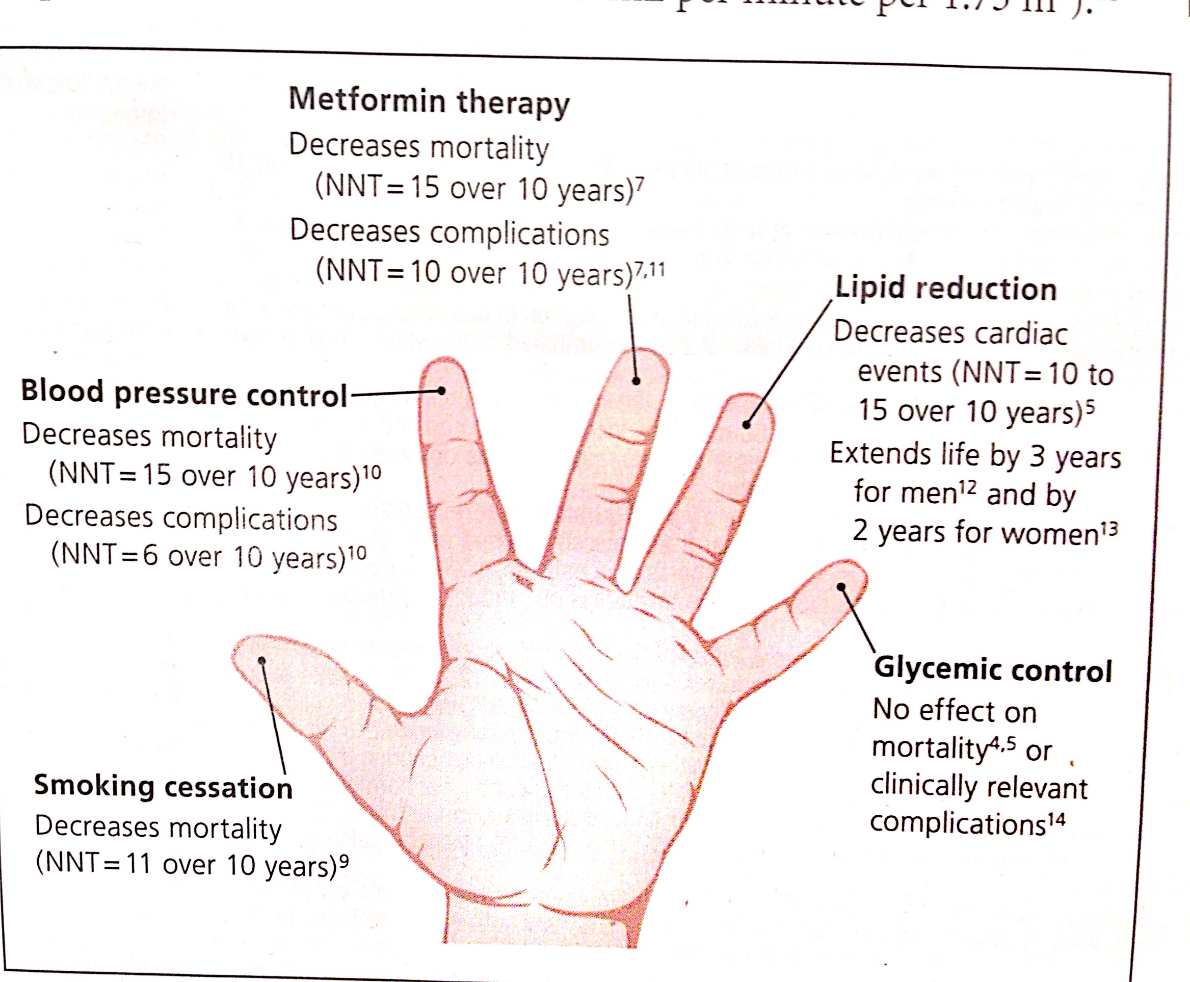 - Lastly, blood sugar control. Despite our focusing on blood sugars as an indicator of quality of medical care, the other “four fingers” may help more than blood sugar control.